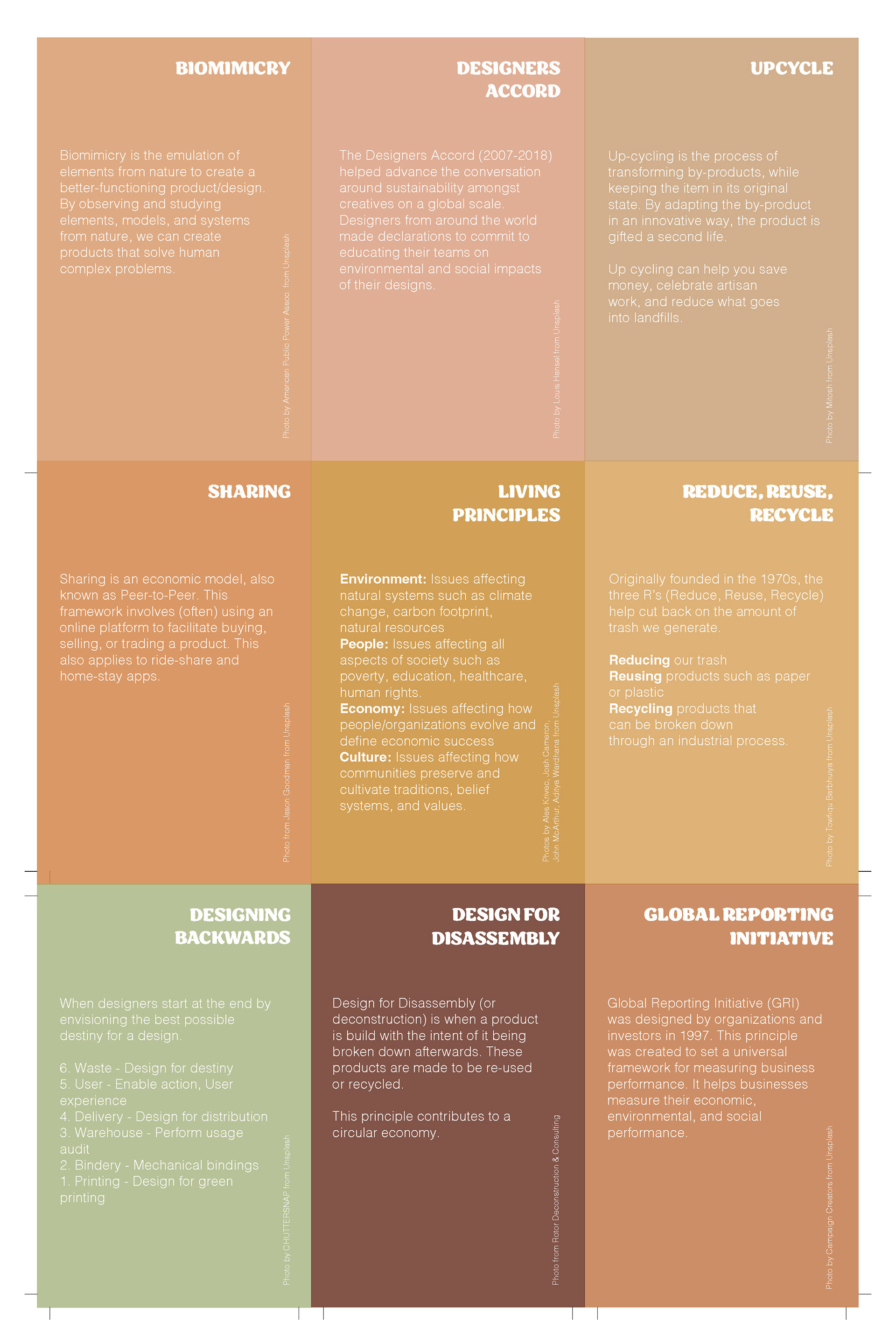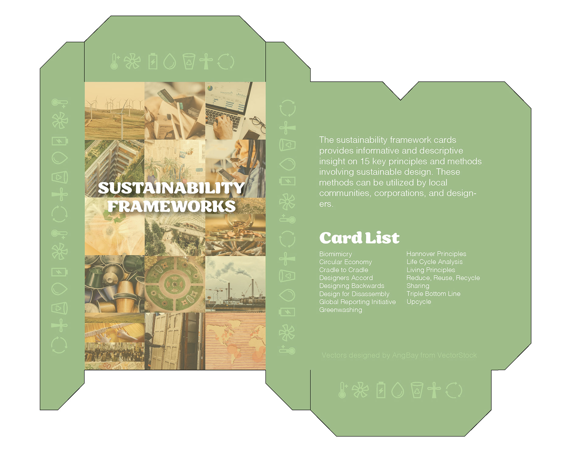 The imagery provided on each card was color-graded to look cohesive as a unit. I incorporated earth tones onto the back side of each card, creating a smooth transition. The final design supports creative thinking while aligning with the broader goal of integrating sustainability into the design process.